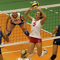 블로킹은 네트상단 위에서 상대방의 스파이크를 점프하여 저지하는 방어기술입니다. 블로킹은 높이, 타이밍, 코스의 리딩, 체력 4가지 요소가 중요합니다.